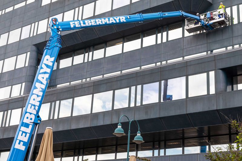 Робърт Бауер, управител на подразделението на Felbermayr за работни платформи и вилични високоповдигачи, коментира: „Във Felbermayr ориентацията към клиента и обслужването са наши основни приоритети. Нашата цел е да работим с клиентите си, за да намерим най-доброто и най-безопасното решение за почистване на стъкла и фасади, дори и в кратки срокове, ако е необходимо.“